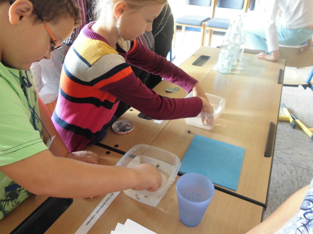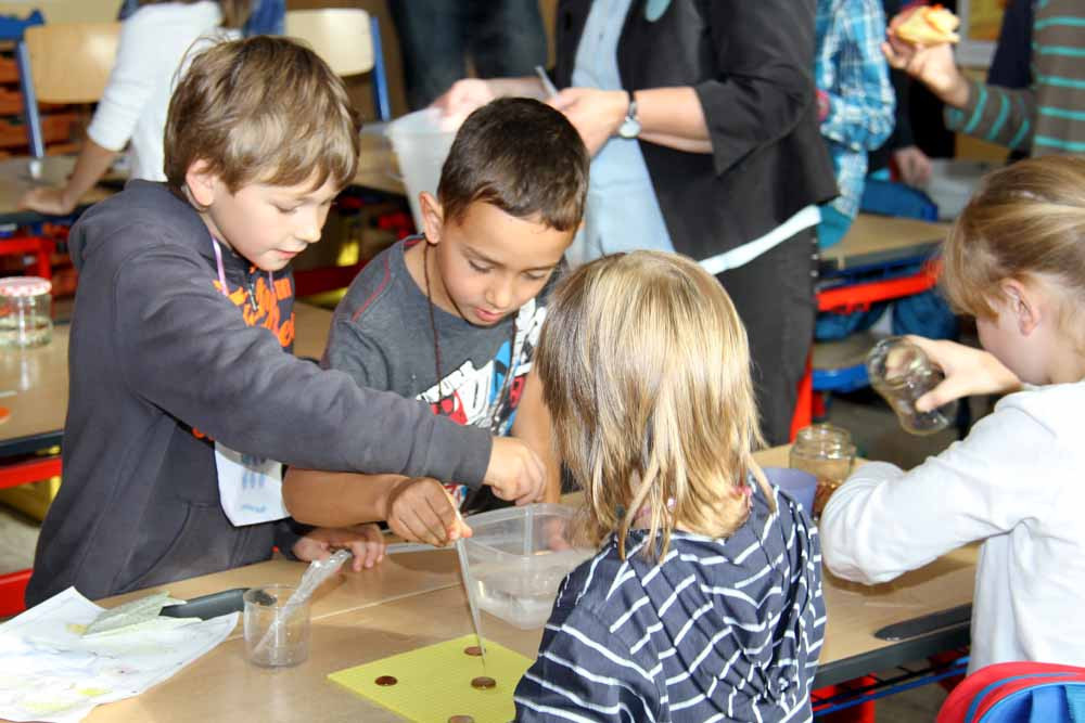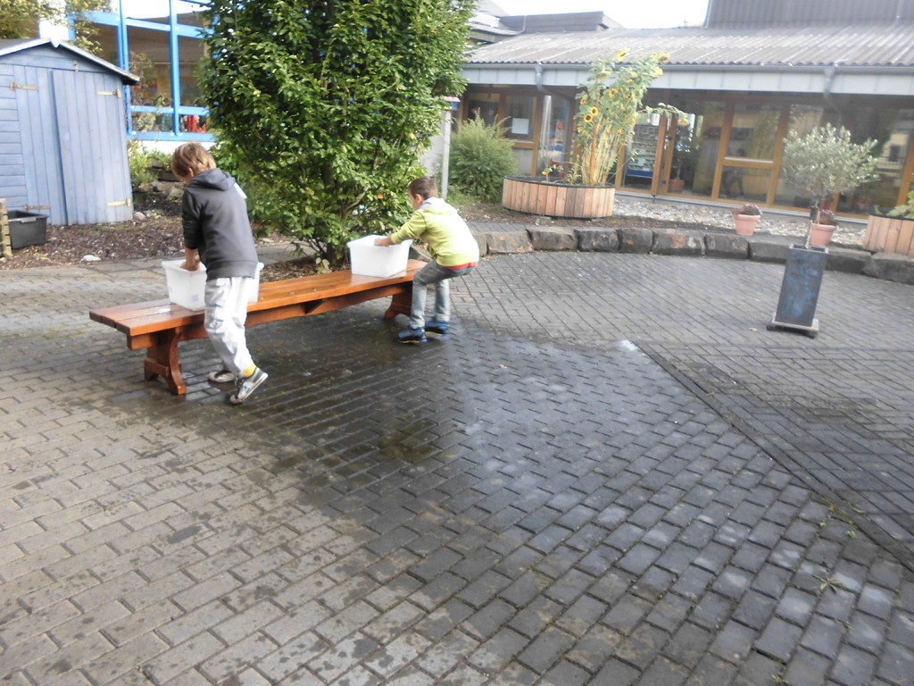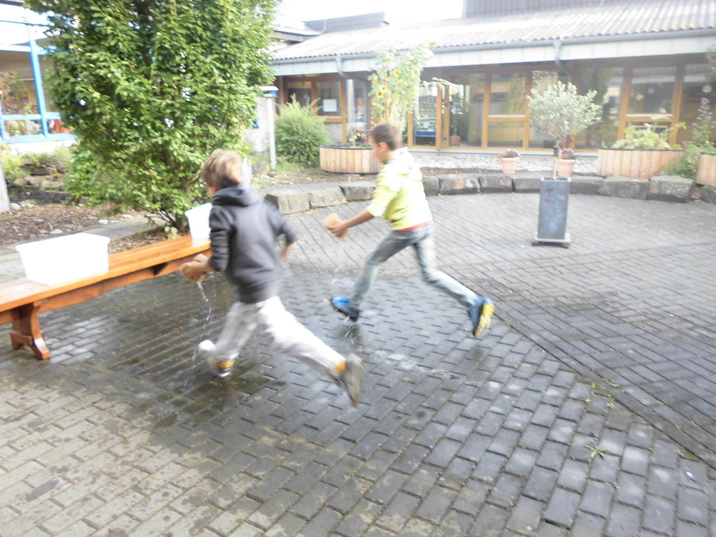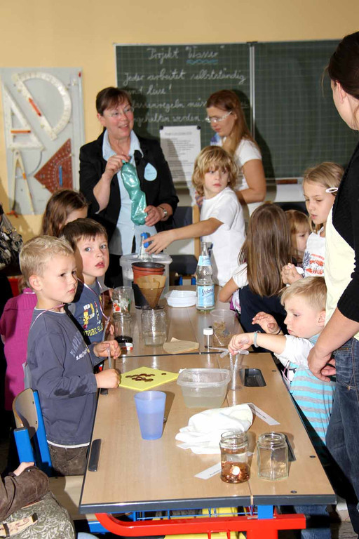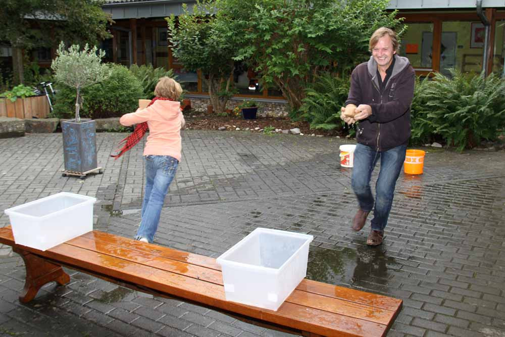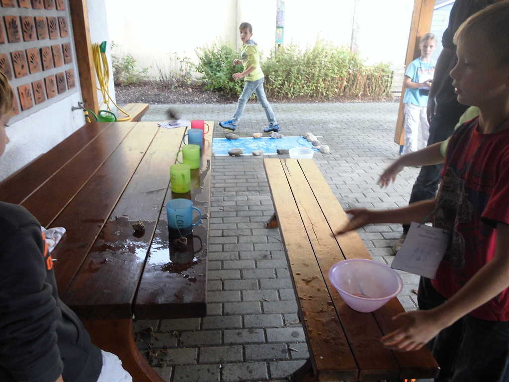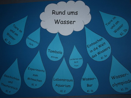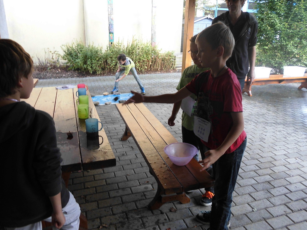 Am 21. September 2013 fand der diesjährige Projekttag "Rund ums Wasser" statt. Spannende Themen wie der Wasserkreislauf, Tiere am und im Wasser sowie Müll im Bach wurden angeboten. Auch die Wasserolympiade hat den Kindern sichtlich Freude bereitet.